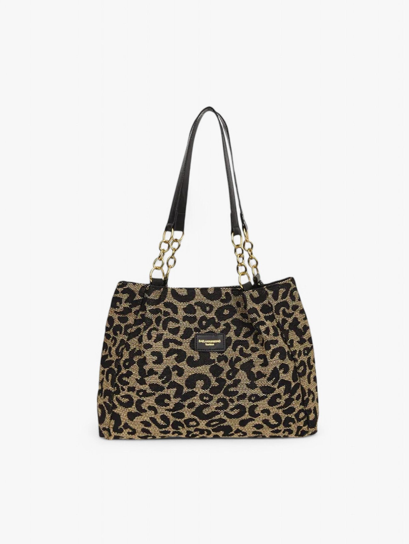 Jada | Women's Leopard Print Shoulder Bag Tote Bag Gold Chain Details